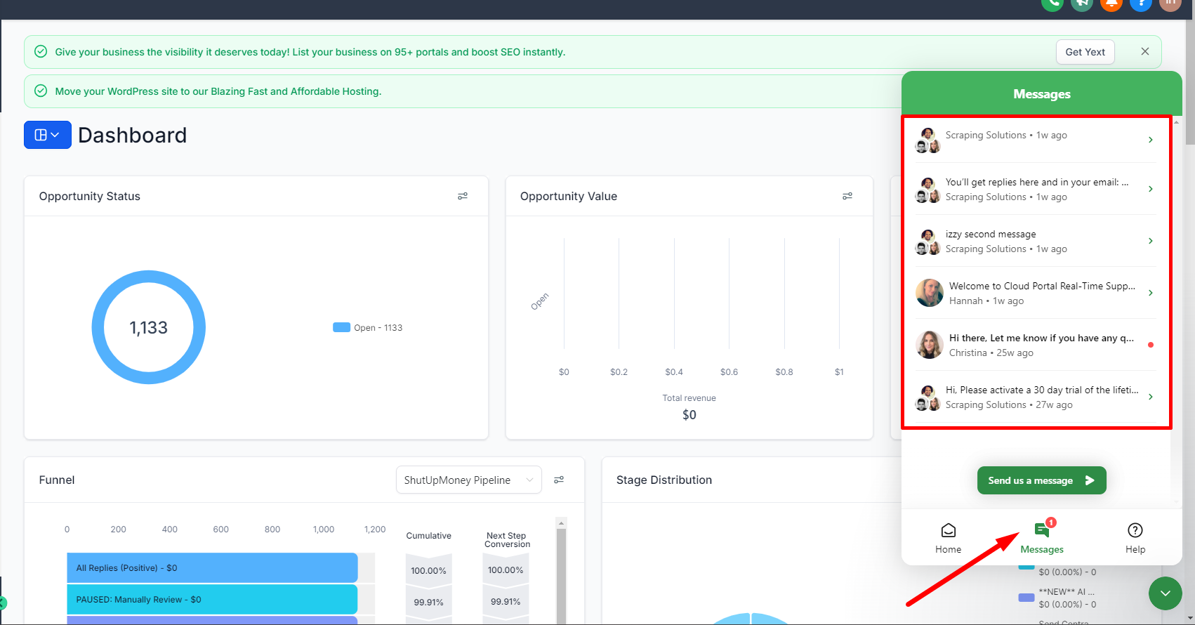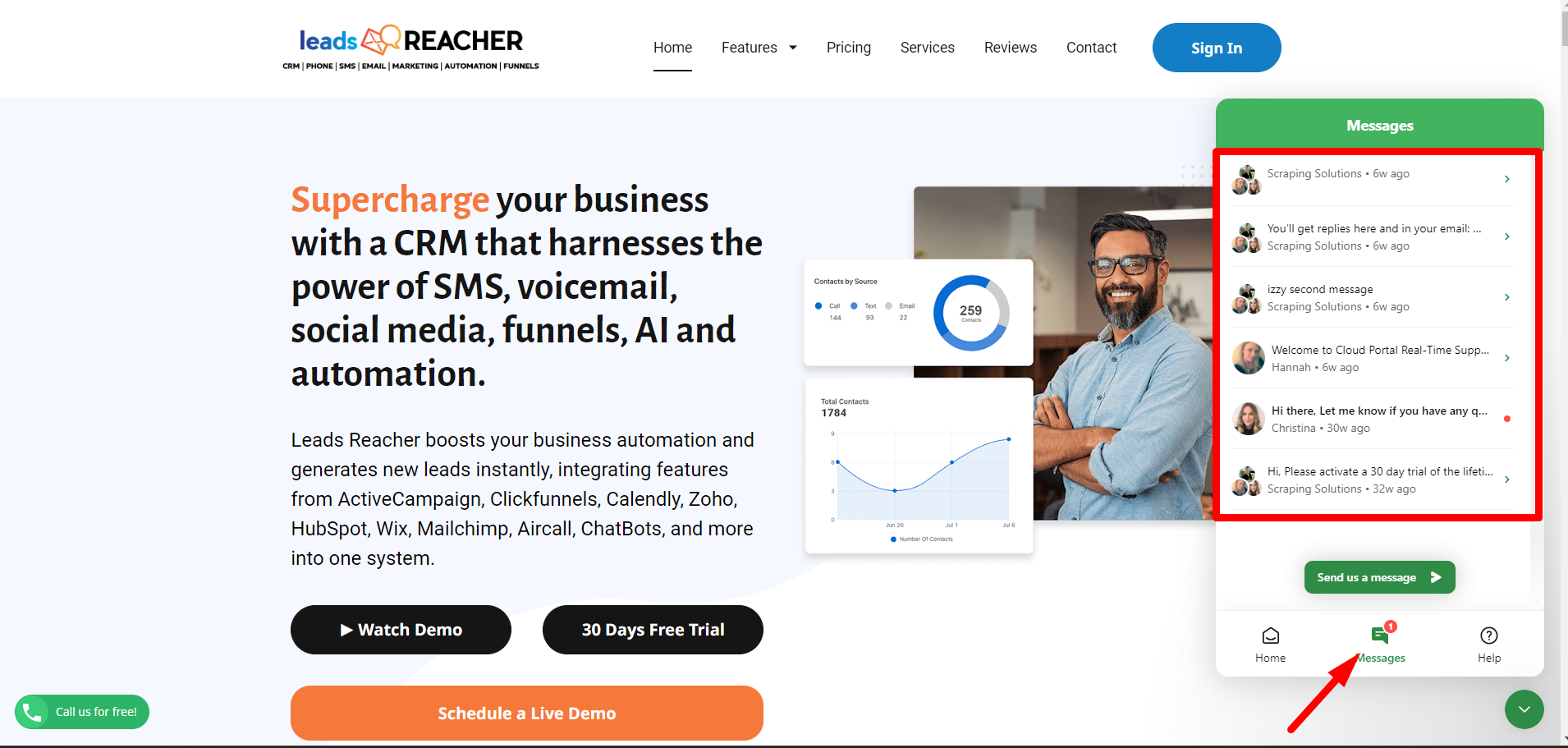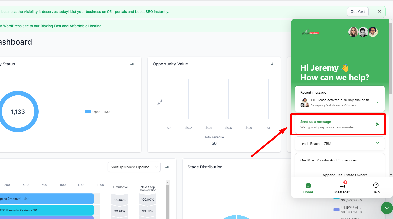 When the support team replies, you will receive a pop-up notification as well as an email. If you prefer, you can communicate via email, and all chat history will appear the next time you log in to Leads Reacher.