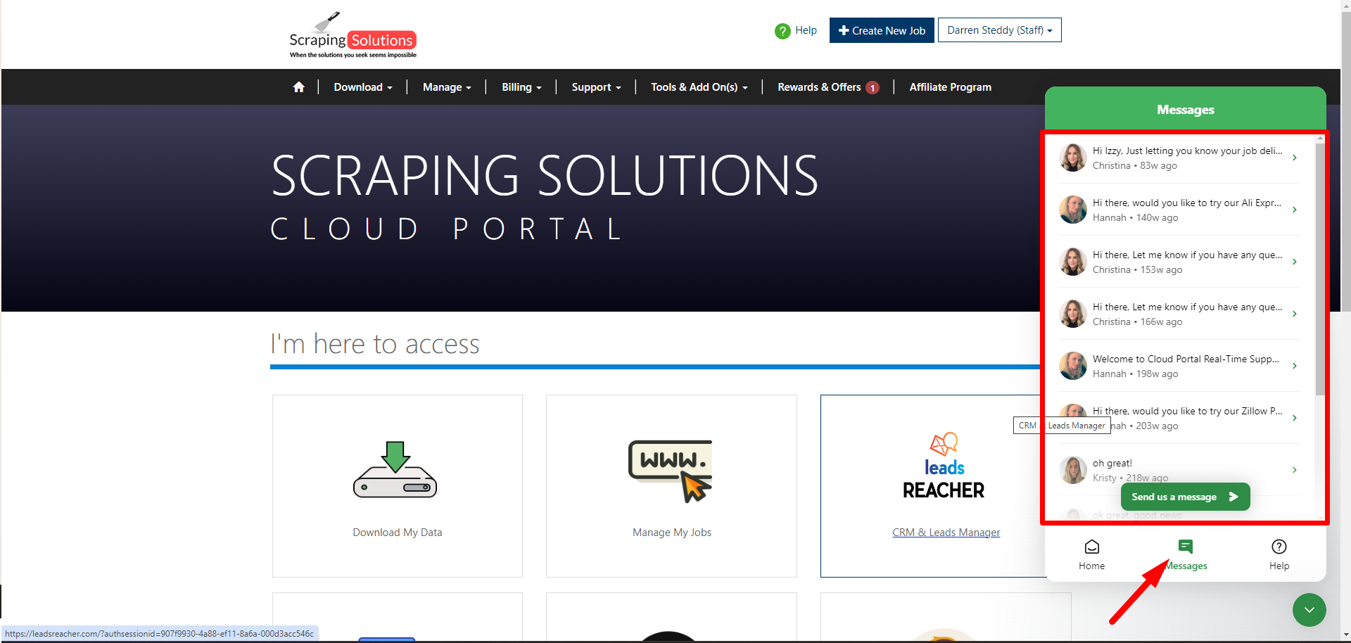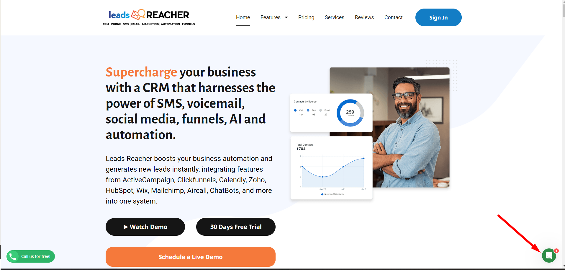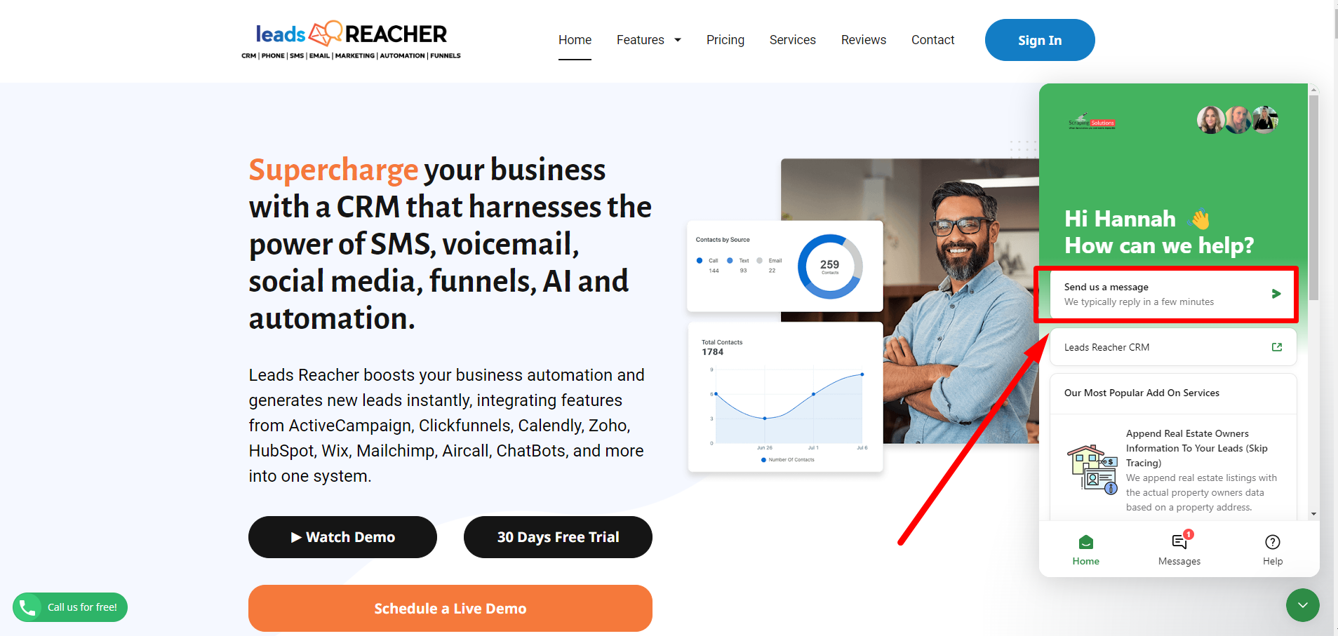 Click on the chat window in the bottom right-hand corner at https://app.leadsreacher.com