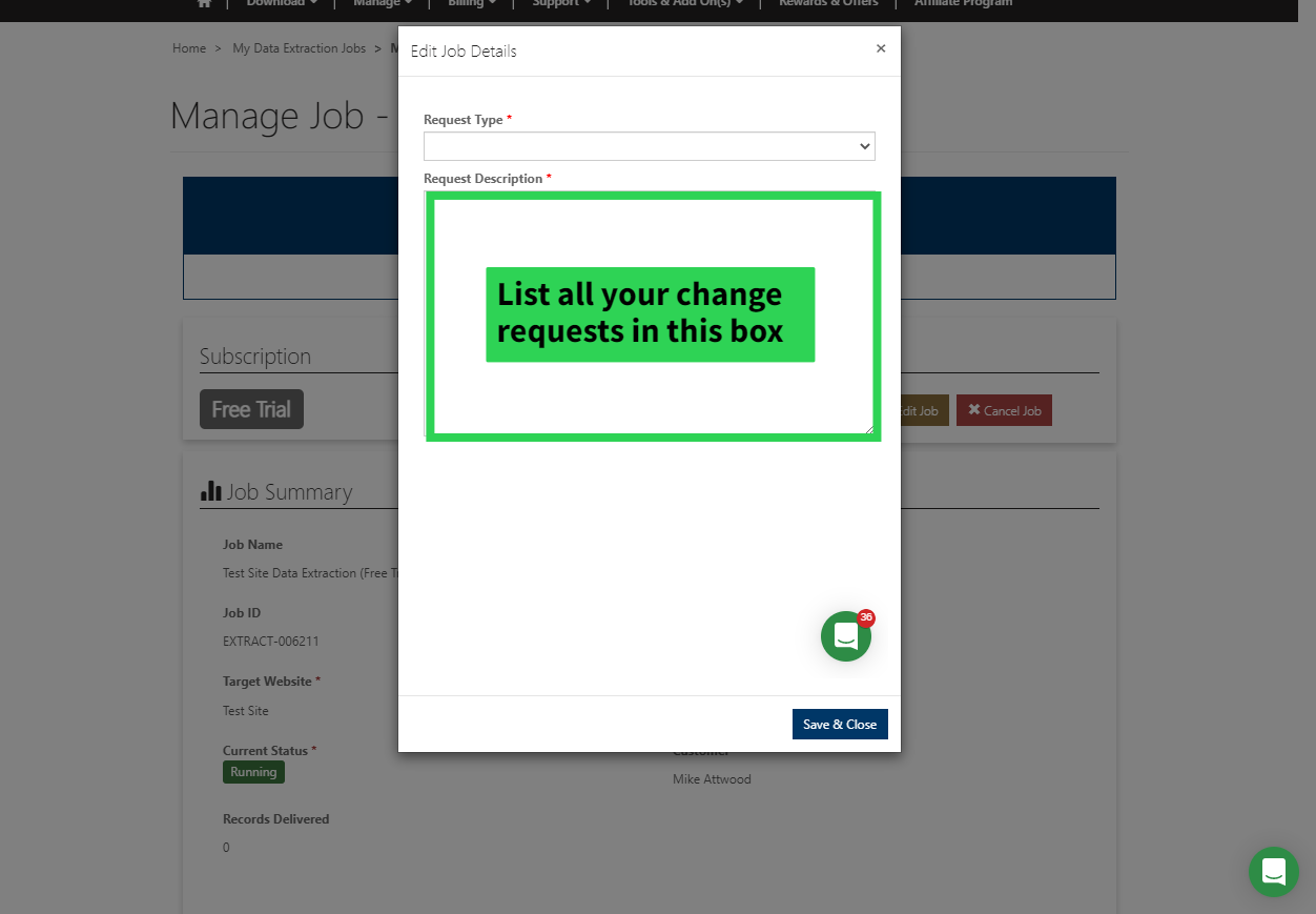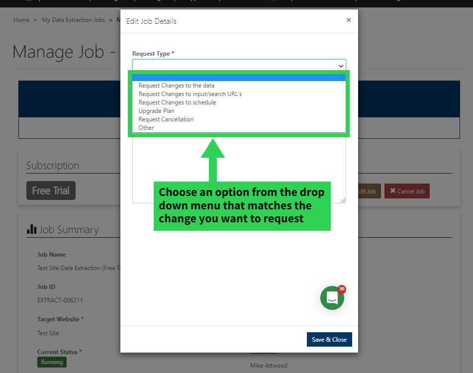 Choose the job you would like to manage and request changes to and then just click the Manage Job relating to that job