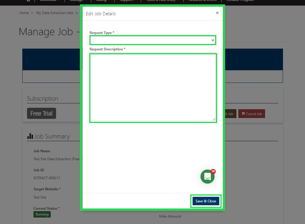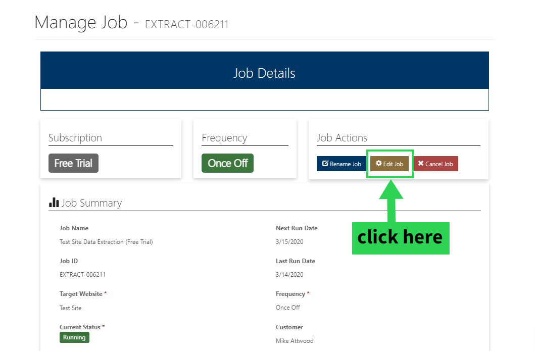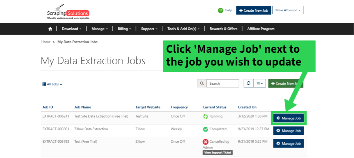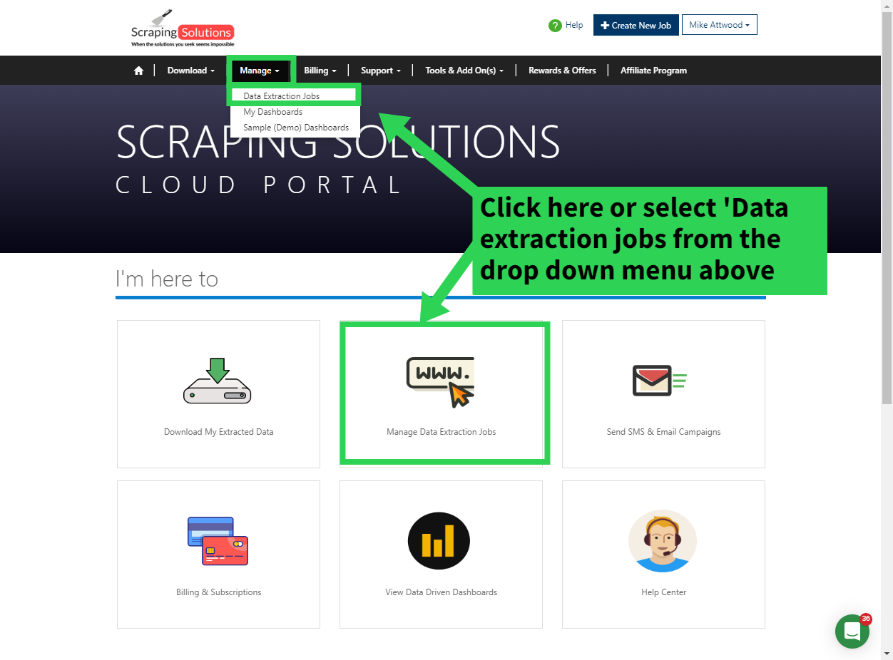 Click on the Manage Data Extraction Jobs section of the home page or from the drop down menu bar along the top,