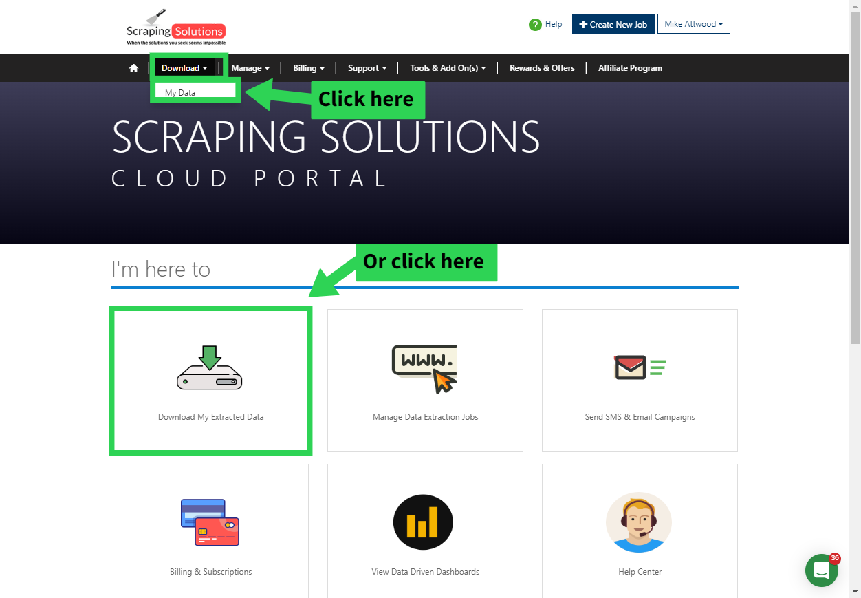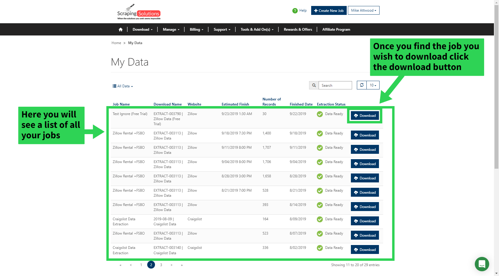 You have two options to go about downloaded your extracted data