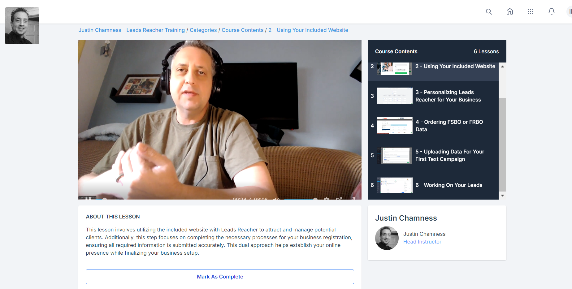 If you signed up for Leads Reacher as part of Justin Chamness's course, take a look at the following free training course where Justin takes you through all the necessary steps to get started with the Leads Reacher CRM.